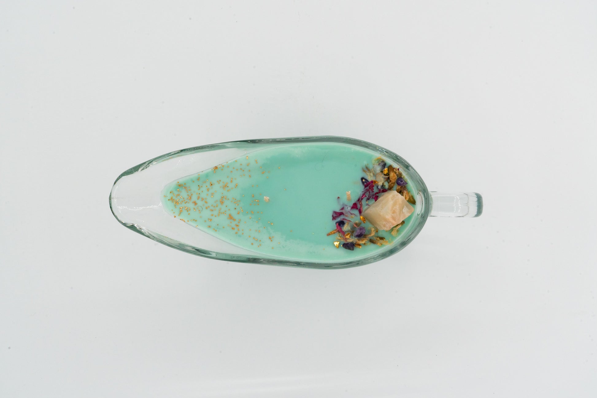 Adornments: Raw Moonstone & Gold Quartz Crystal, Jasmine, Rose Petals and a sprinkle of gold glitter.