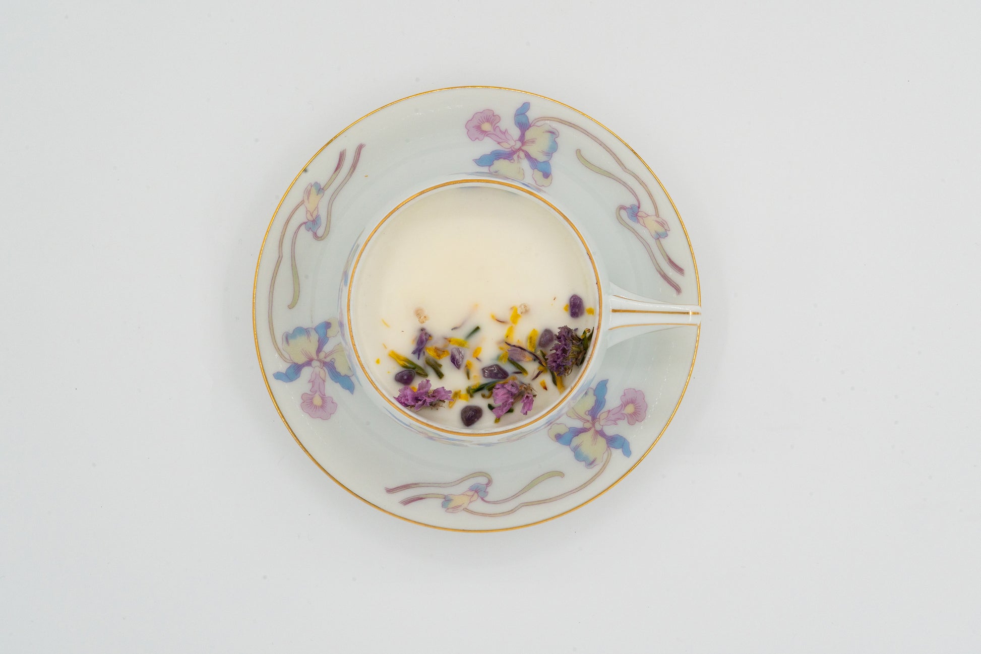 Step into a whimsical world with these Reiki-attuned hand-poured candles. Crafted from Coconut-Soy wax, organic herbs, crystals, and the magical scent of Holiday Cheer, each candle is a journey of enchantment. Nestled in a Vintage Bohemia Ceramic cup from Czechoslovakia, wrapped with playful pink, blue, and purple irises and a touch of gold trim. Illuminate your space with whimsy and relaxation—because everyday moments deserve a sprinkle of magic!