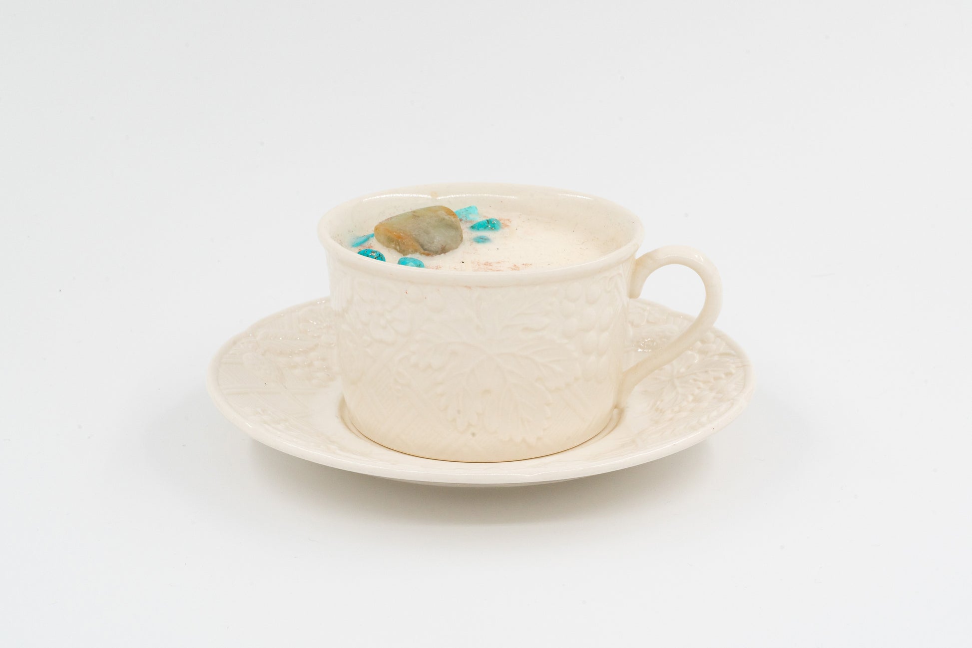 Dimensions: Approximately 3.5" in diameter and saucer is 5."