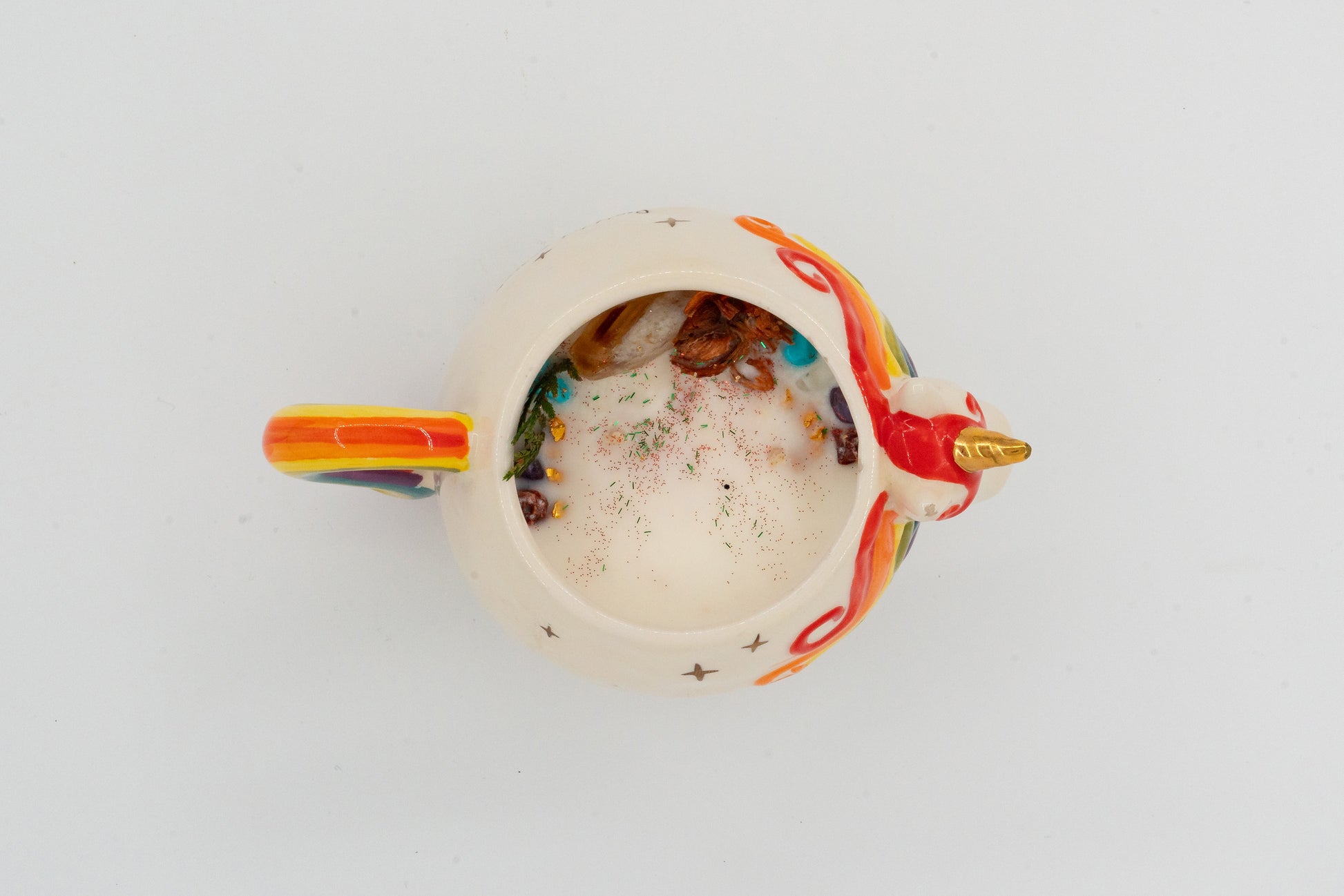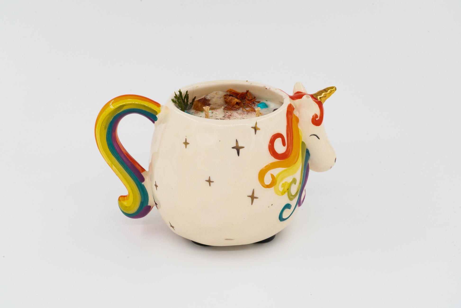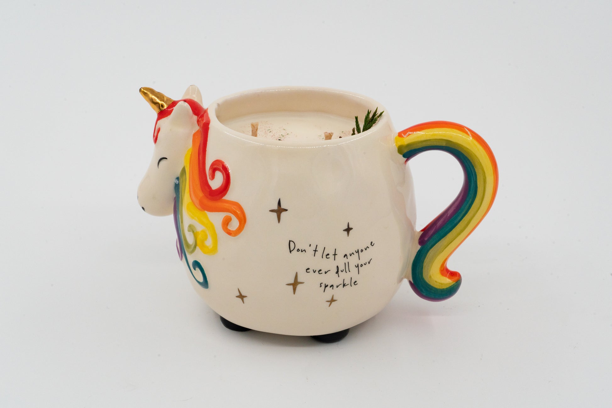 Vessel: Whimsical "Don't let anyone ever dull your sparkle" unicorn mug by Natural Life. This pre-loved vessel will make you smile, a perfect gift to the wild spirit in your life.